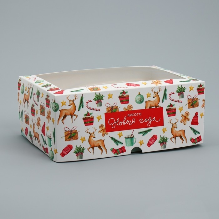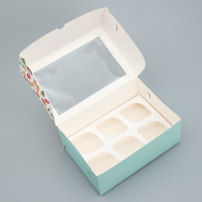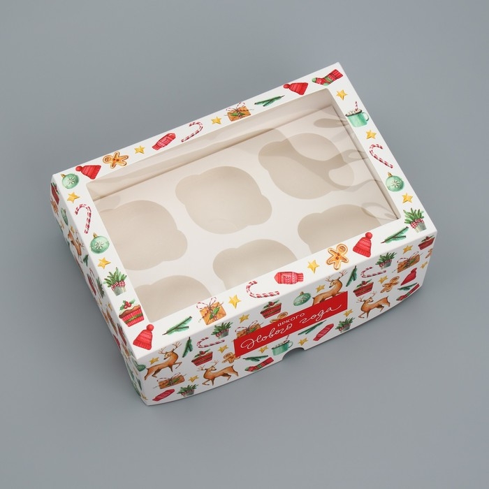 Коробка складная на 6 капкейков с окном «Яркого Нового года», 25 х 17 х 10 см, Новый год