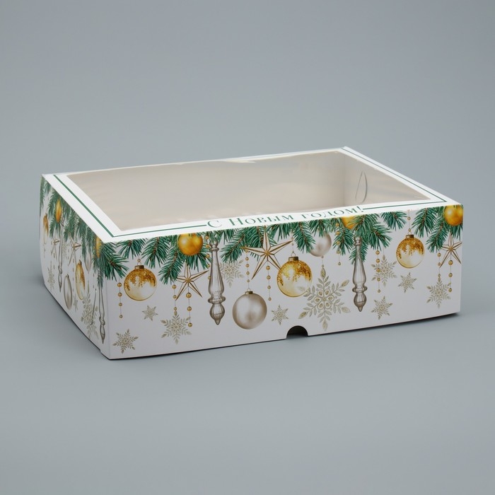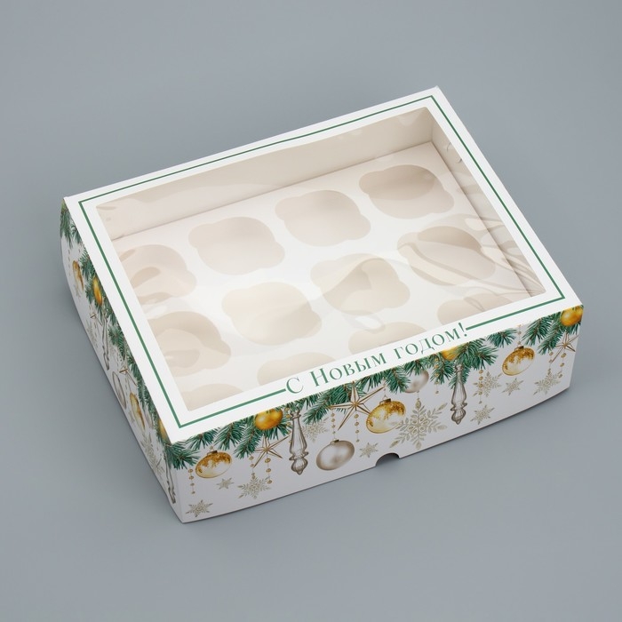 Коробка складная на 12 капкейков с окном «С Новым годом!» 32.8 х 25.6 х 10 см, Новый год