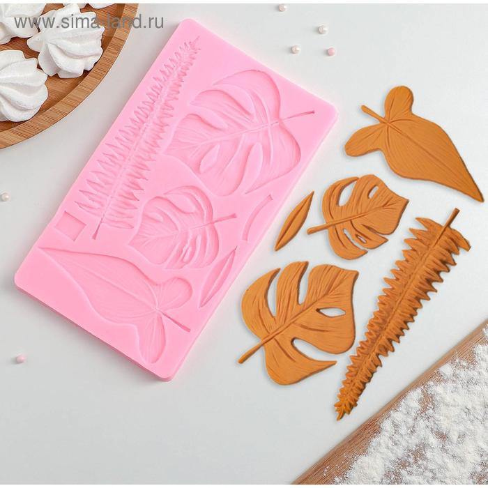 Молд Доляна «Тропические листья», силикон, 20,7×12 см, цвет розовый