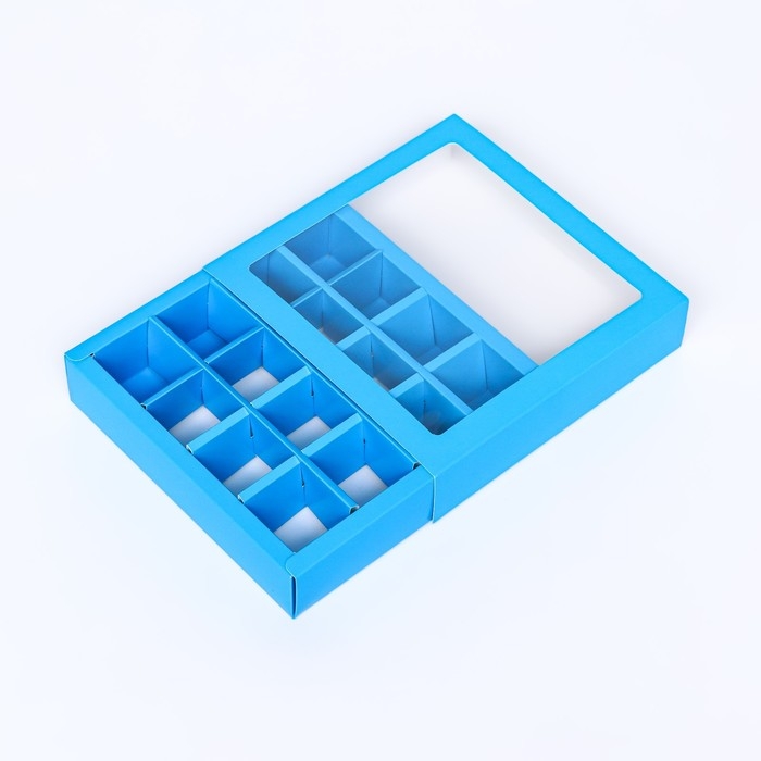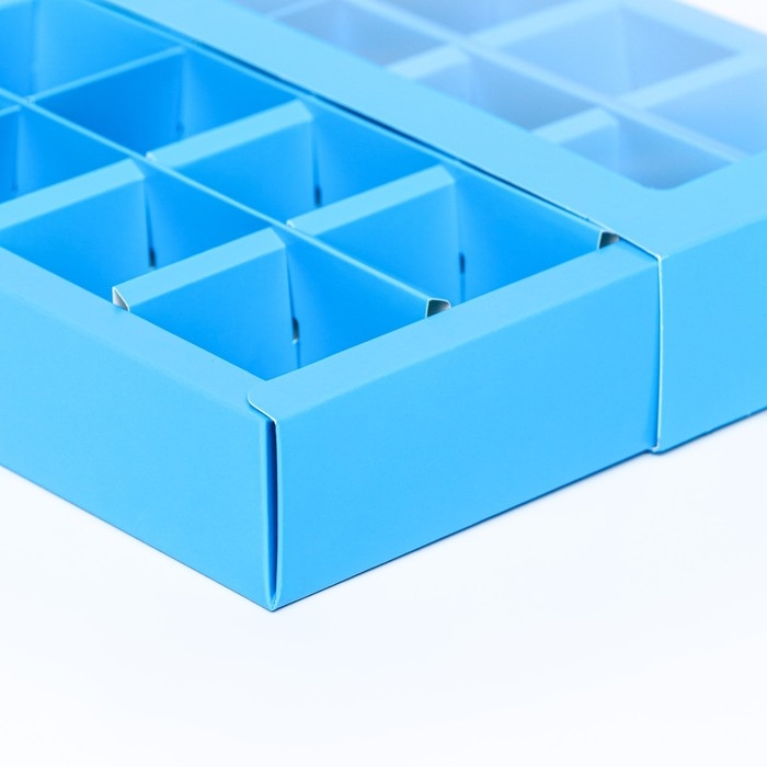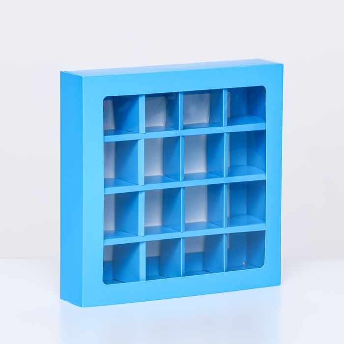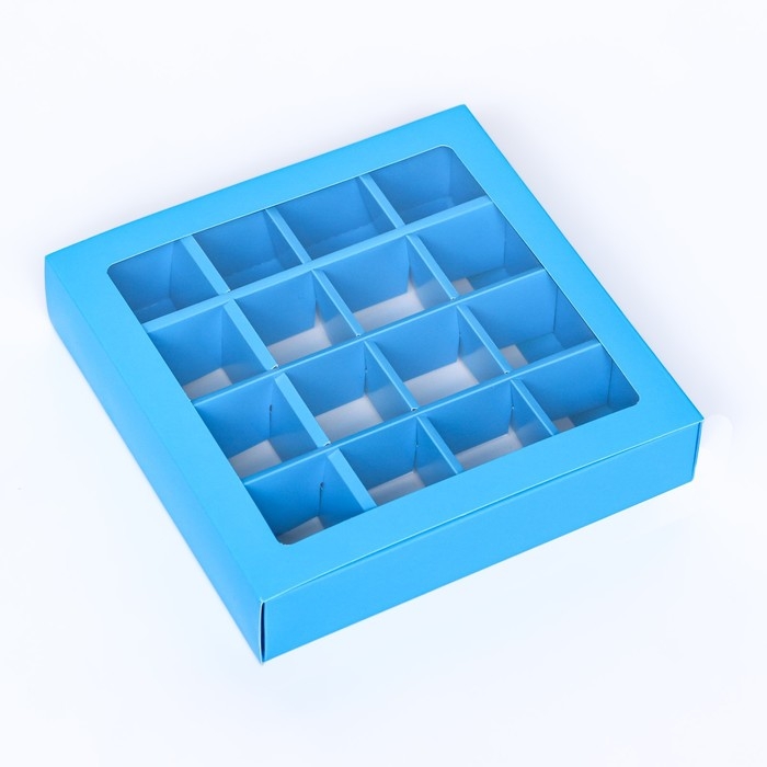 Коробка для конфет, 16 шт, голубая, 17,7 х 17,7 х 3,8 см