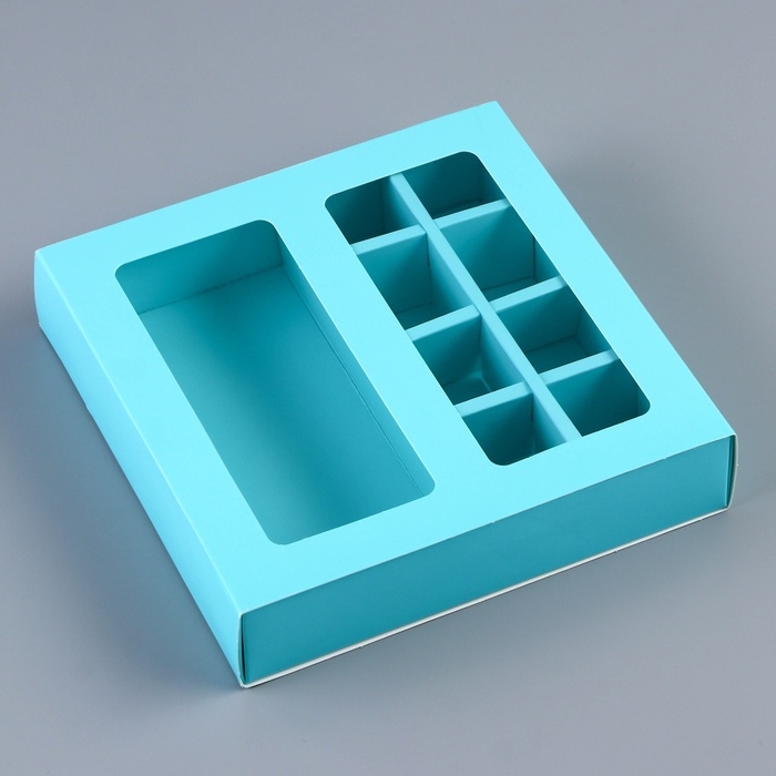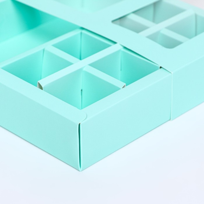 Коробка для 8 конфет + шоколад, с окном, мята, 17,7 х 17,7 х 3,8 см. Кондитерская упаковка