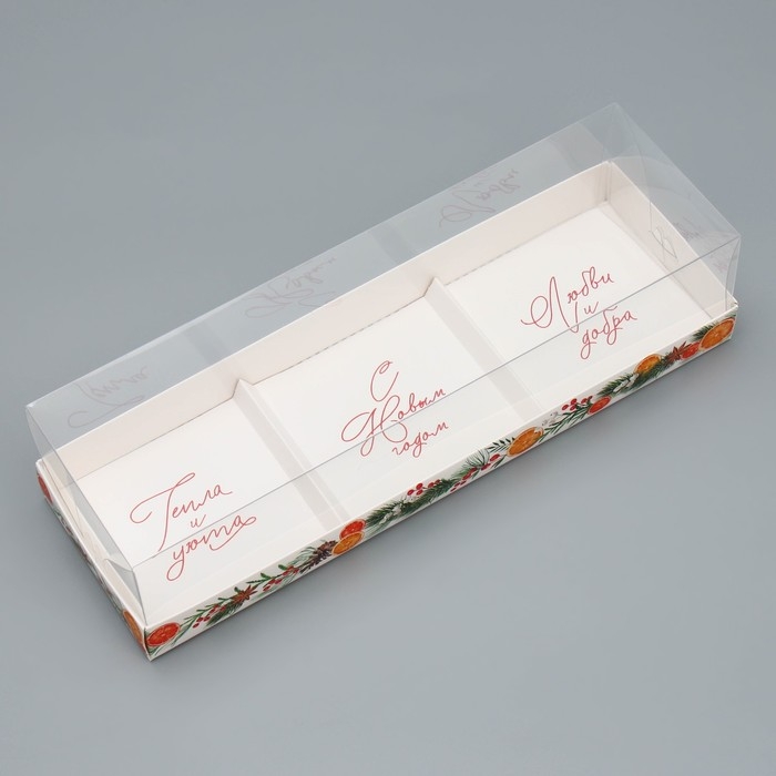 Коробка для для муссовых пирожных «С Новым годом, тепла и уюта», 27 х 8.6 х 6.5 см, Новый год