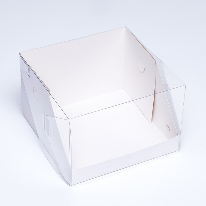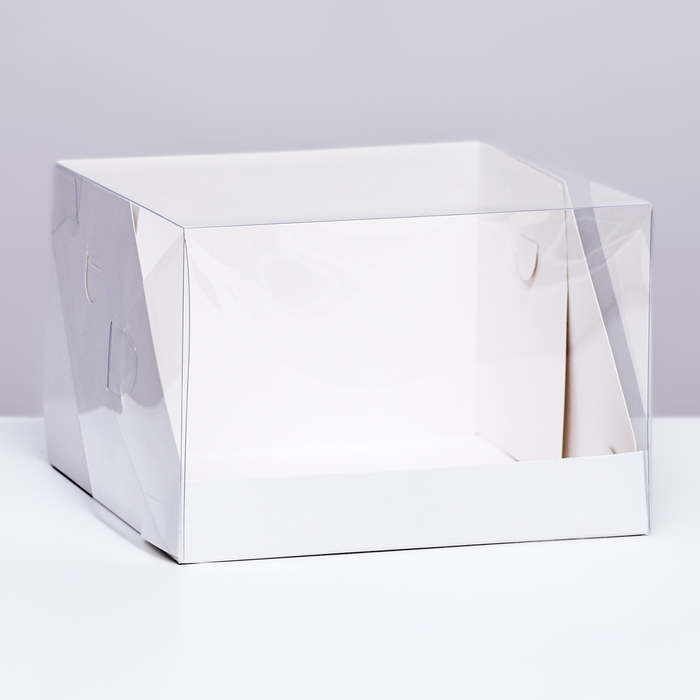 Кондитерская коробка с пластиковой крышкой, белая 20,5 х 20,5 х 14 см