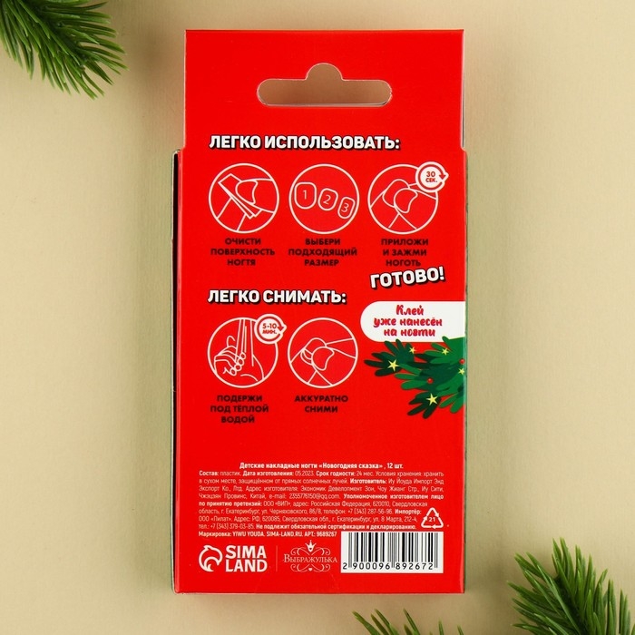 Детские накладные ногти на новый год «Сказка», 12 шт