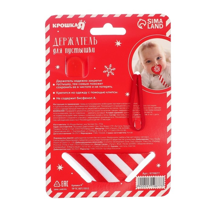 Держатель для соски - пустышки «Наша сладость», новогодний, на ленте, подарочная упаковка, Крошка Я