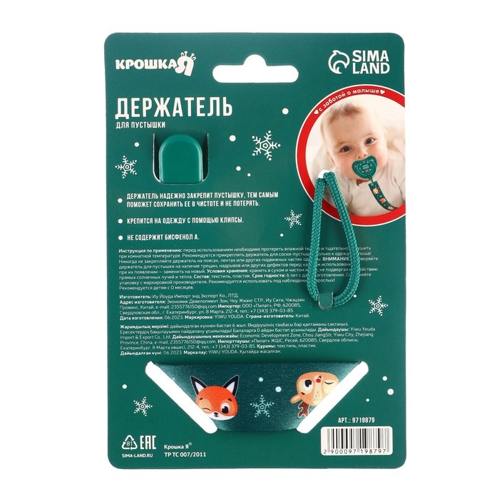 Держатель для соски - пустышки «Лесные друзья», новогодний, на ленте, подарочная упаковка, Крошка Я
