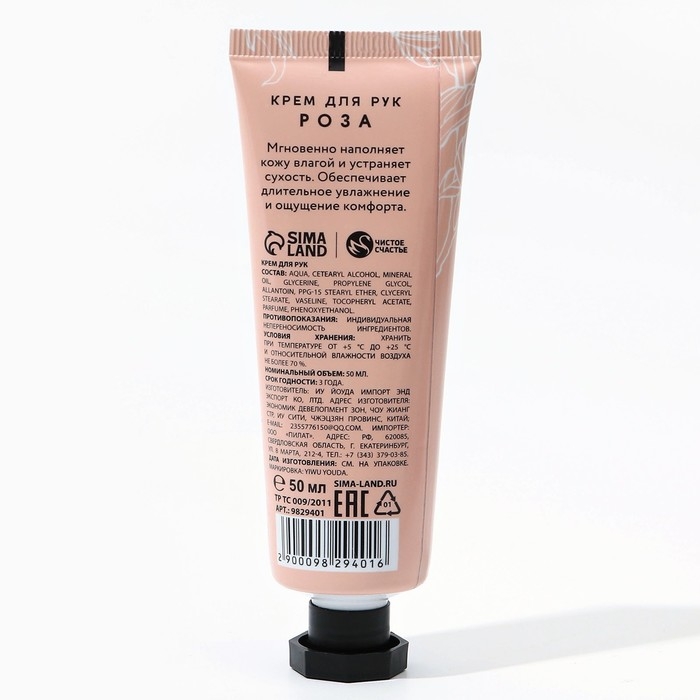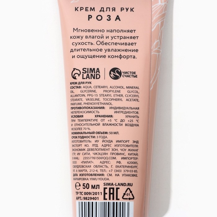 Крем для рук, 50 мл, аромат розы, ЧИСТОЕ СЧАСТЬЕ