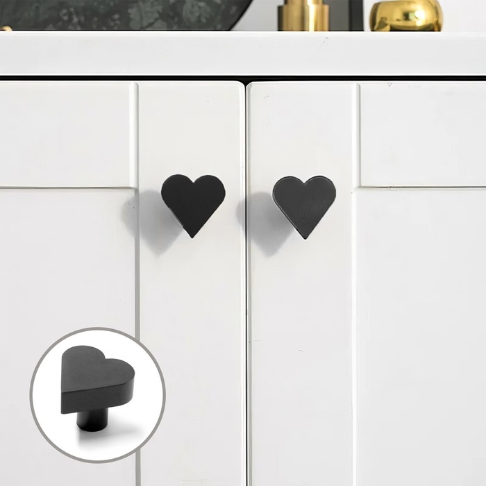 Ручка кнопка мебельная “HEART“, цвет черный
