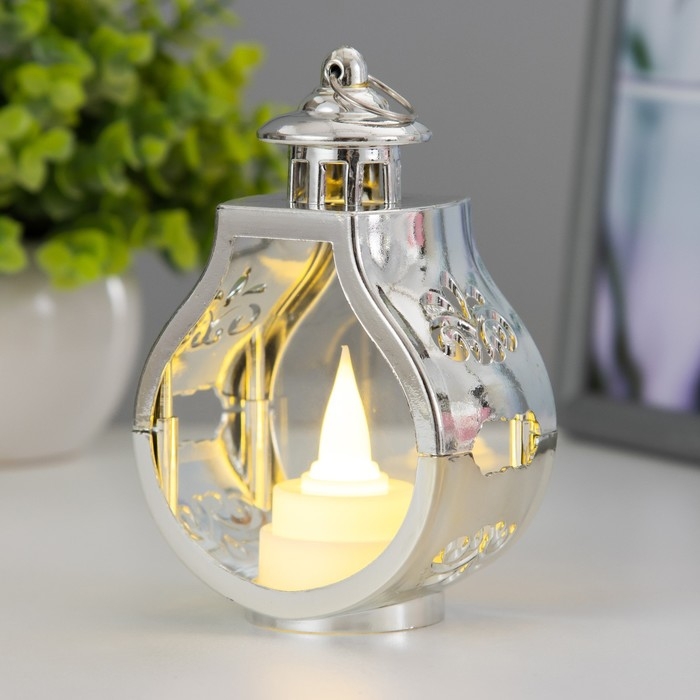 Ночник "Застывшая свеча" 3хLR1130 серебро 5х7,5х12 см RISALUX
