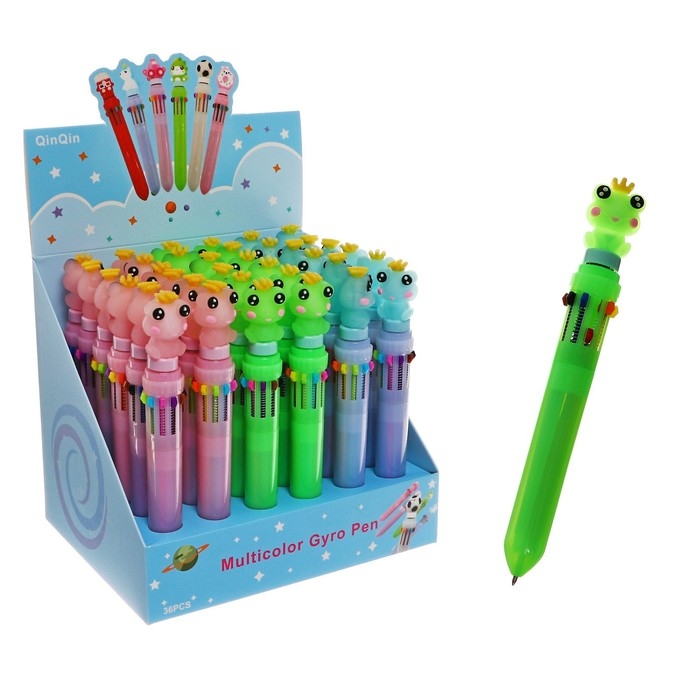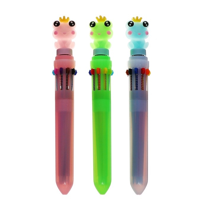 Ручка шариковая автоматическая 10-ти цветная, "Лягушка-спиннер", МИКС