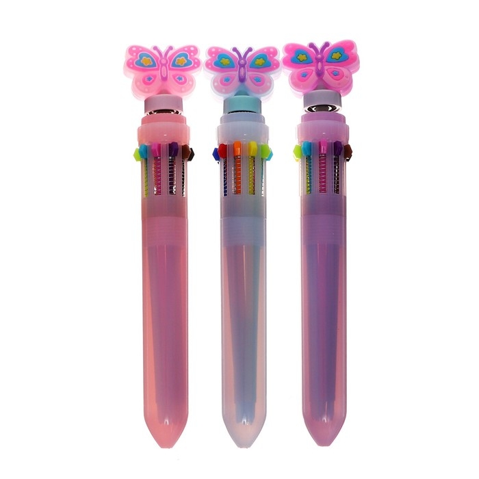 Ручка шариковая автоматическая 10-ти цветная, "Бабочка-спиннер", МИКС