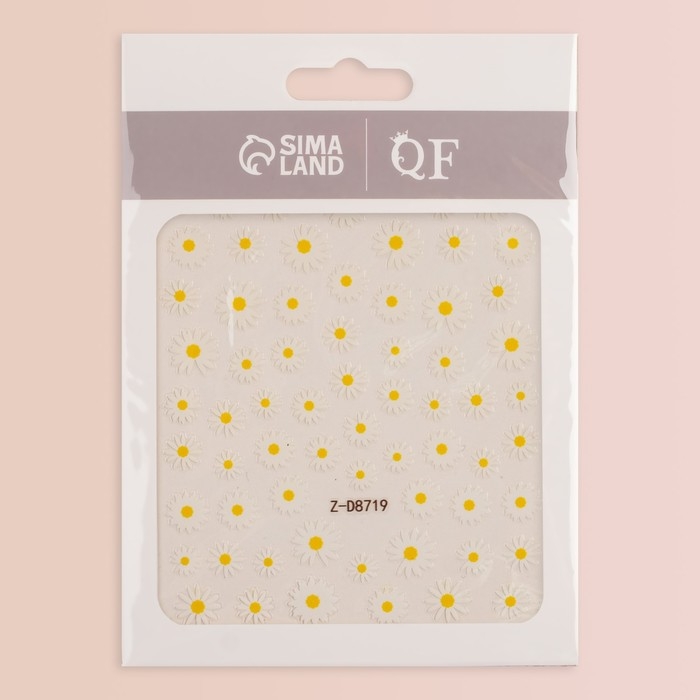 Наклейки для ногтей «Букеты ромашек», объёмные, цвет белый