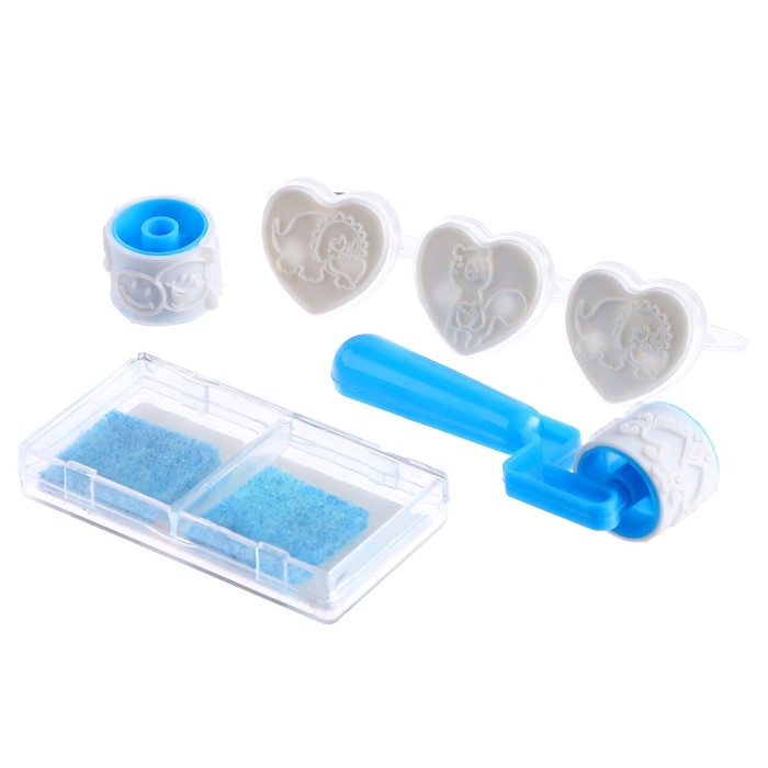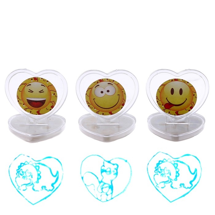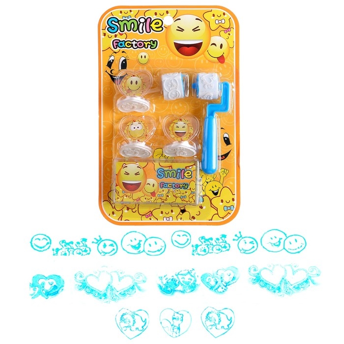Печать цветная «Смайл», набор 3 шт., ролик-печать с 2 насадками, штемпельная подушка