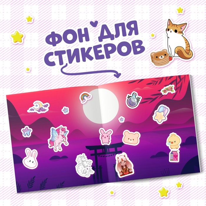 Окунитесь в яркий и чарующий мир аниме вместе с няшными наклейками! Внутри вы найдёте 500 классных стикеров: милые персонажи, традиционные японские символы и вкуснейшие блюда японской кухни. В книжке есть крутой фон с японским пейзажем, который можно украсить тематическими наклейками.