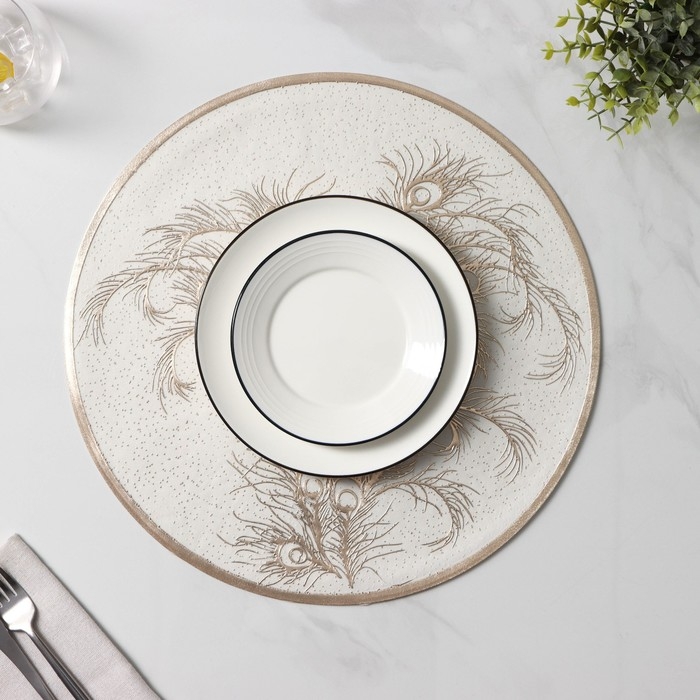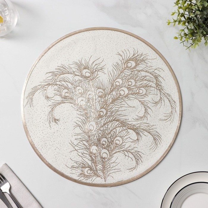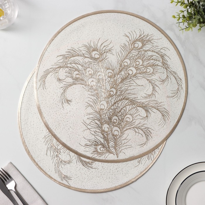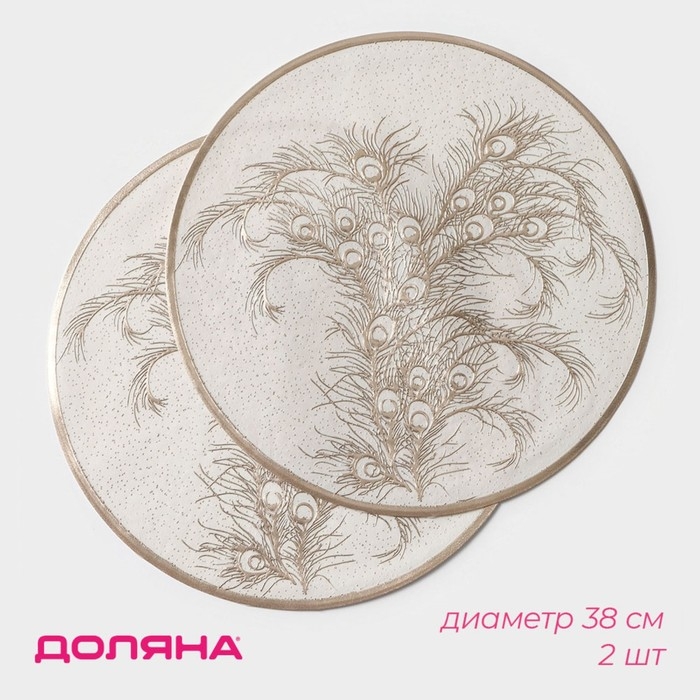 Салфетки сервировочные на стол Доляна «Павлин», 2 шт, d=38 см, цвет бежевый