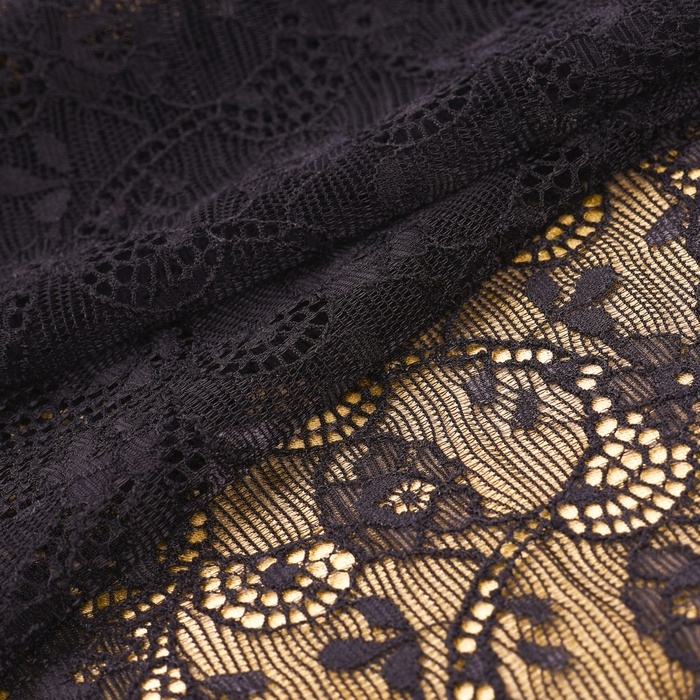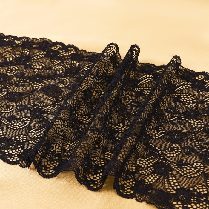 Кружевная эластичная ткань, 180 мм × 2,7 ± 0,5 м, цвет чёрный