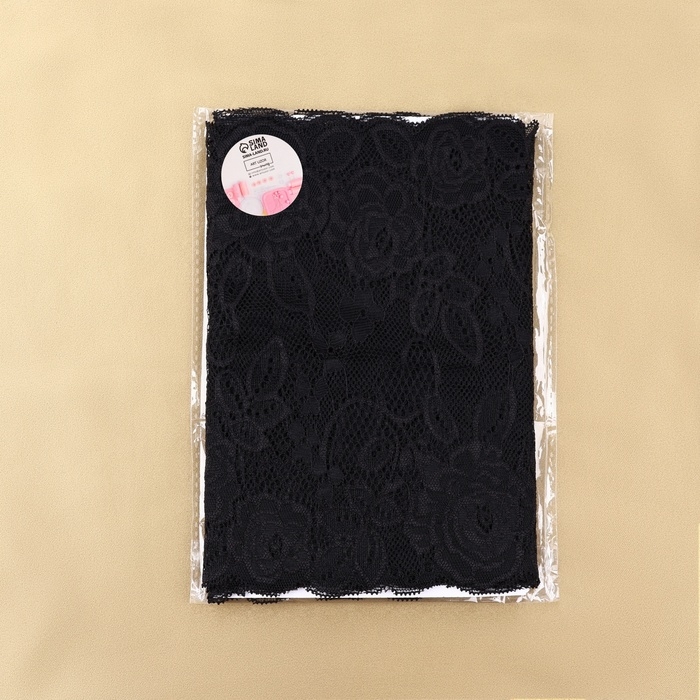 Кружевная эластичная ткань, 190 мм × 2,7 ± 0,5 м, цвет чёрный