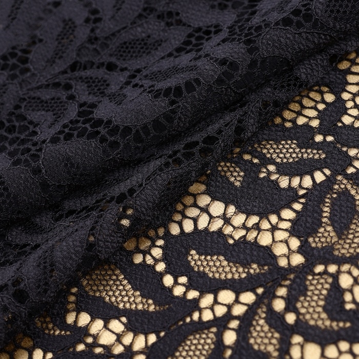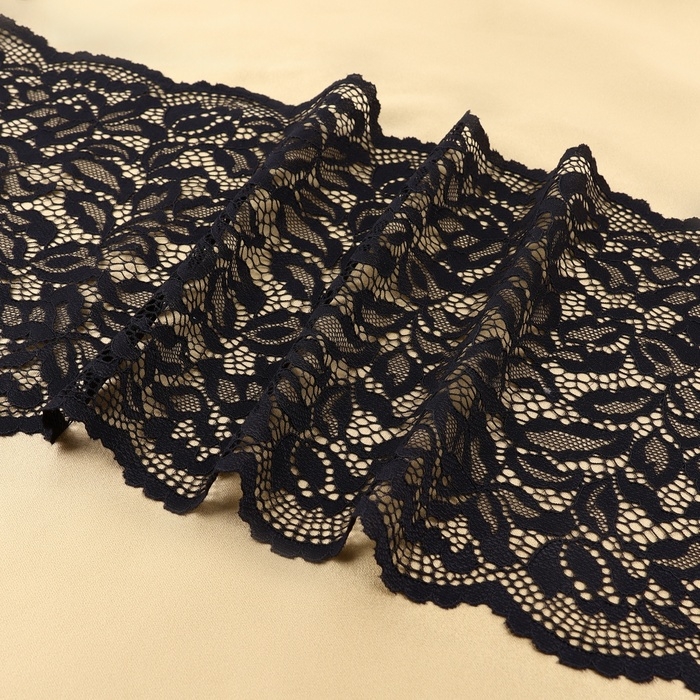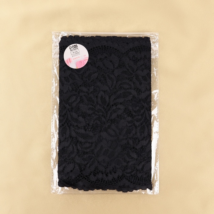 Кружевная эластичная ткань, 220 мм × 2,7 ± 0,5 м, цвет чёрный