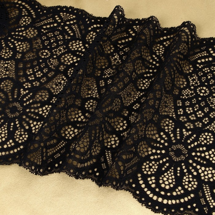 Кружевная эластичная ткань, 240 мм × 2,7 ± 0,5 м, цвет чёрный