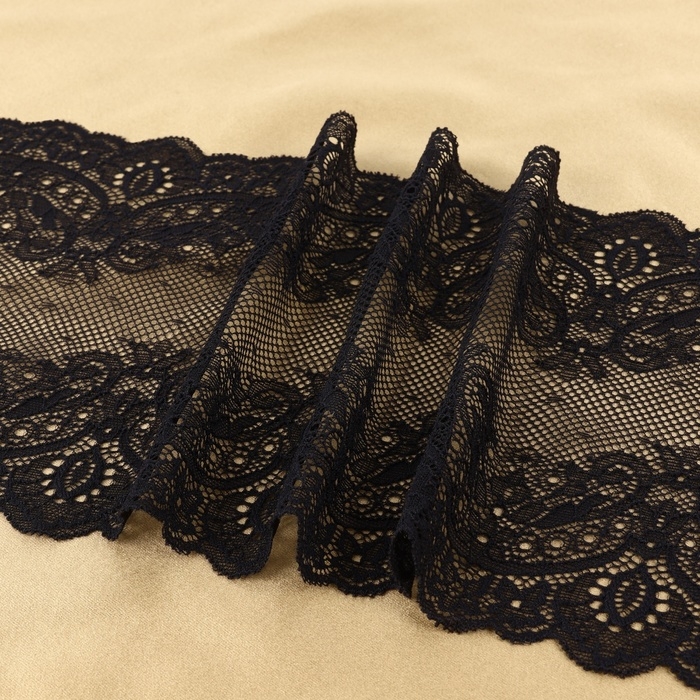 Кружевная эластичная ткань, 190 мм × 2,7 ± 0,5 м, цвет чёрный