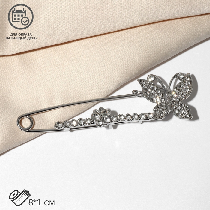 Булавка «Бабочки» дуэт, 8 см, цвет белый в серебре
