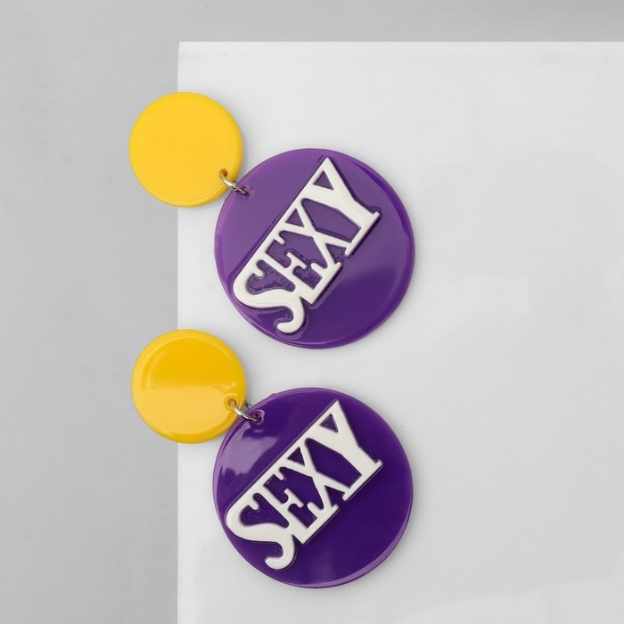 Серьги акрил SEXY, цвет жёлто-фиолетовый в серебре
