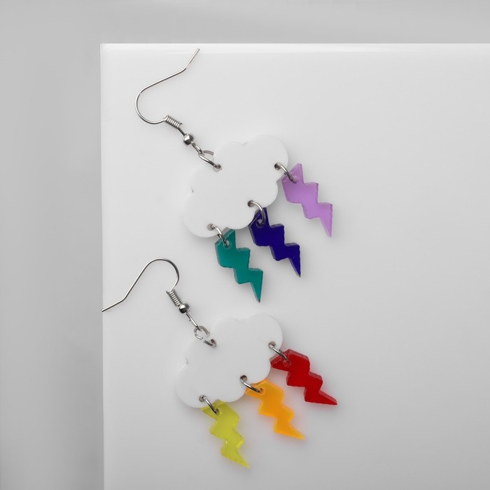 Серьги акрил «Облачко» с молниями, цветные в серебре
