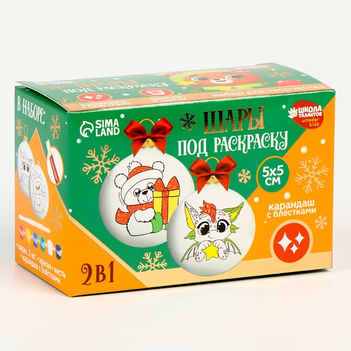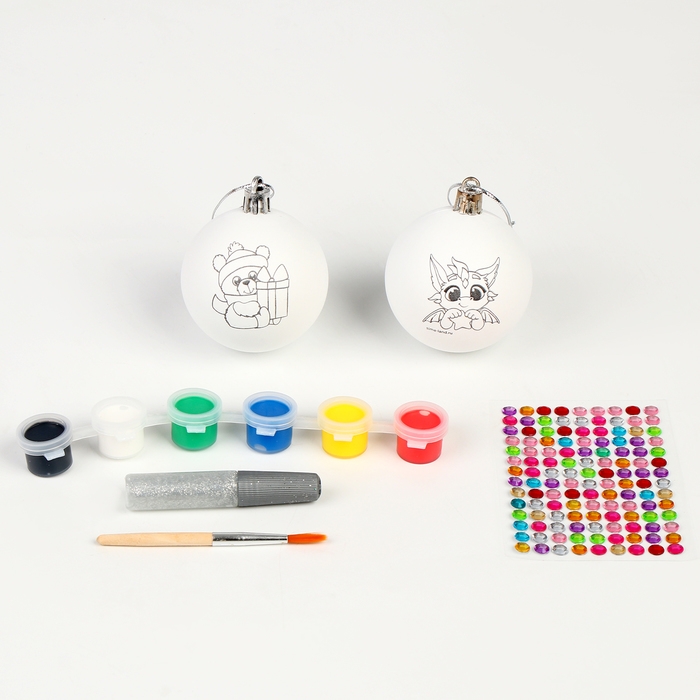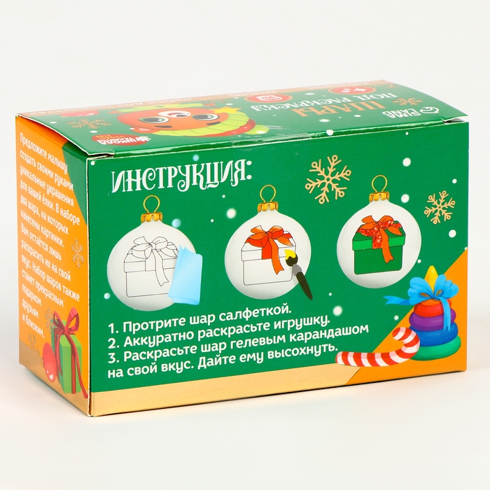 Ёлочные шары под раскраску на новый год «Волшебный подарок», 2 шт, новогодний набор для творчества