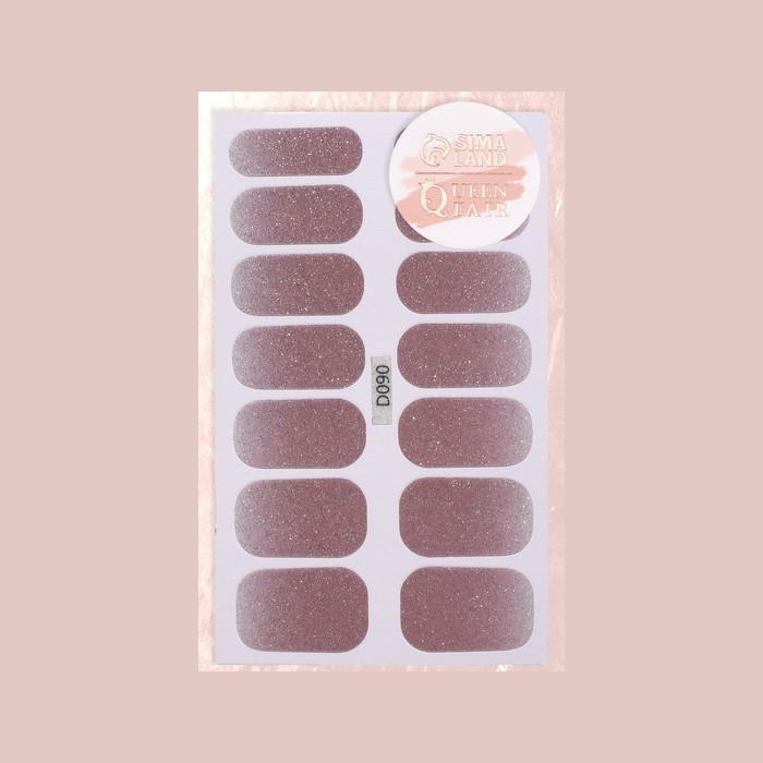 Плёнки для маникюра, 14 шт, с блёстками, цвет пепельно - розовый