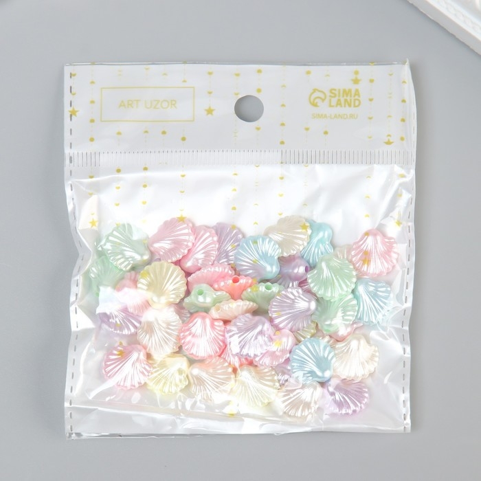 Бусины для творчества пластик "Ракушки" цветной перламутр набор 20 гр 1,4х1,4х0,7 см