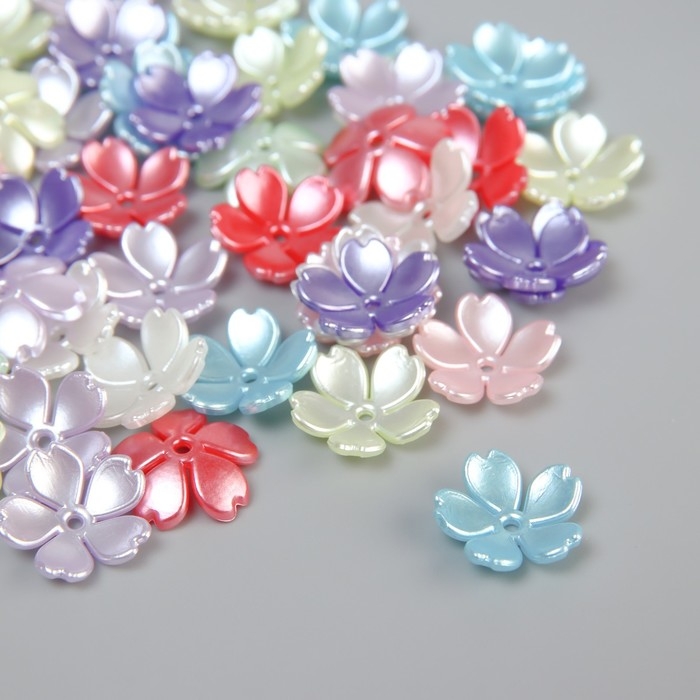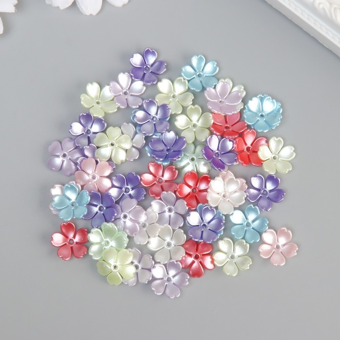 Бусины для творчества пластик "Цветочки" цветной перламутр набор 50 шт 1,5х1,5х0,4 см