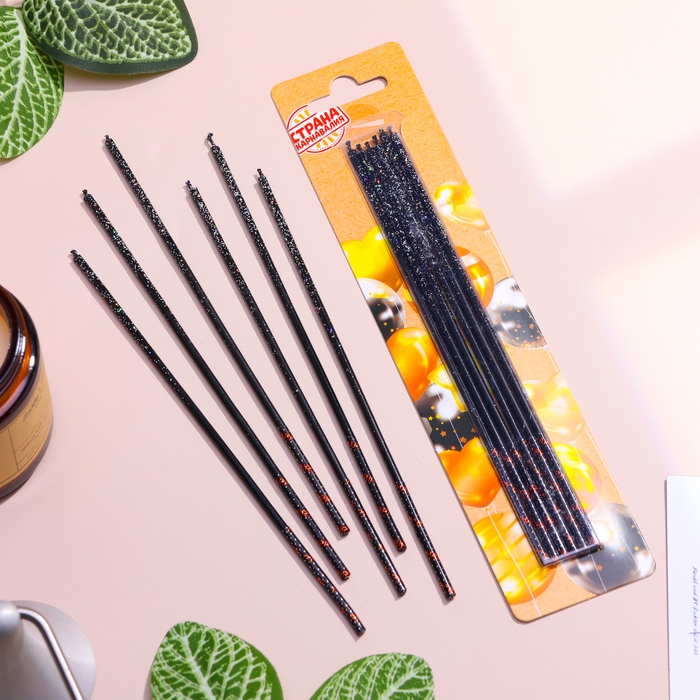 Набор свечей в торт, 6 штук "Сияние", чёрный, 17 см