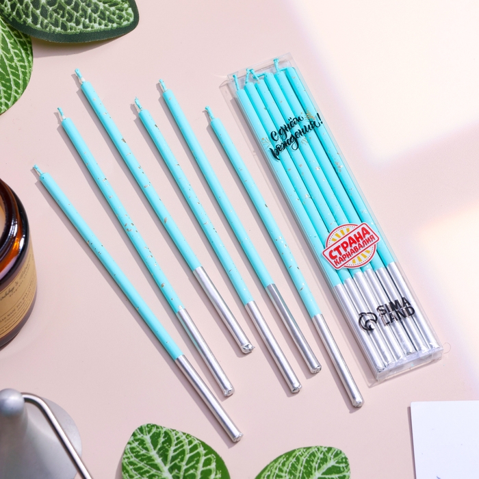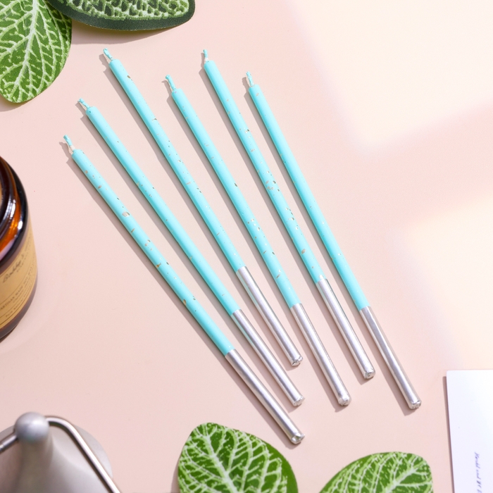 Набор свечей в торт, 6 штук "Исполнение желаний", 15 см, голубой