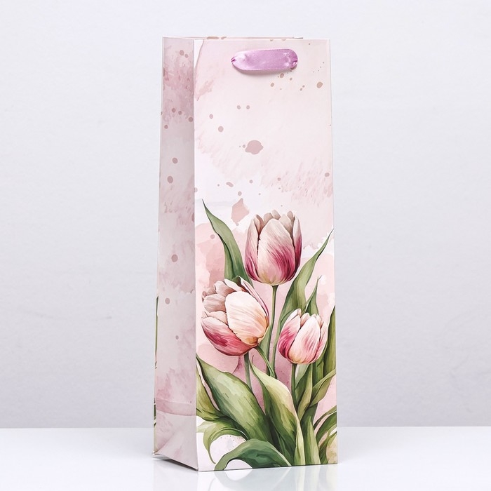 Пакет ламинированный под бутылку "Тюльпаны",13 х 36 х 10 см
