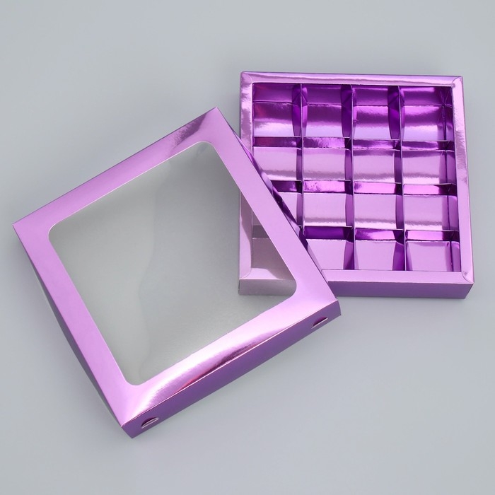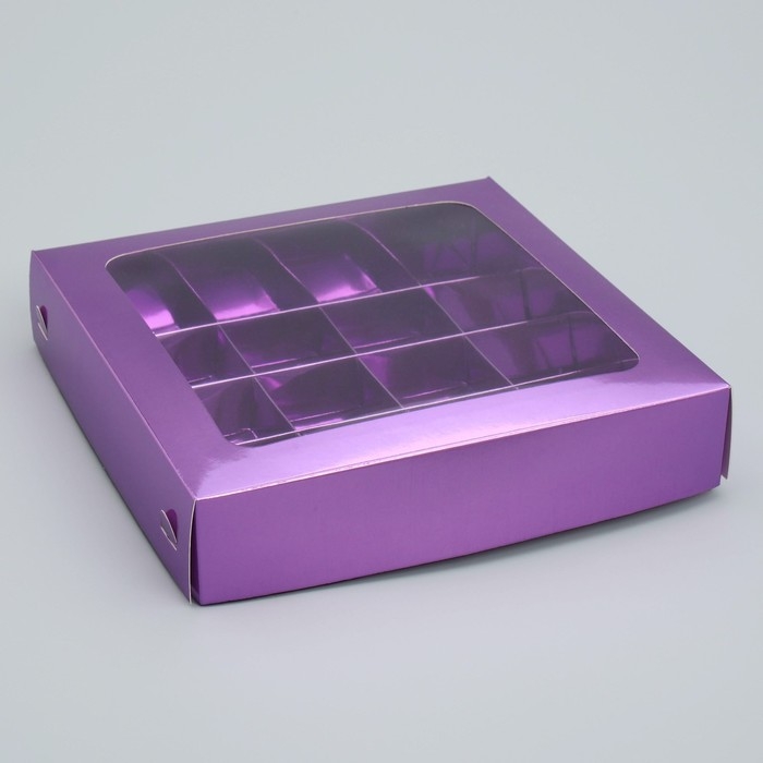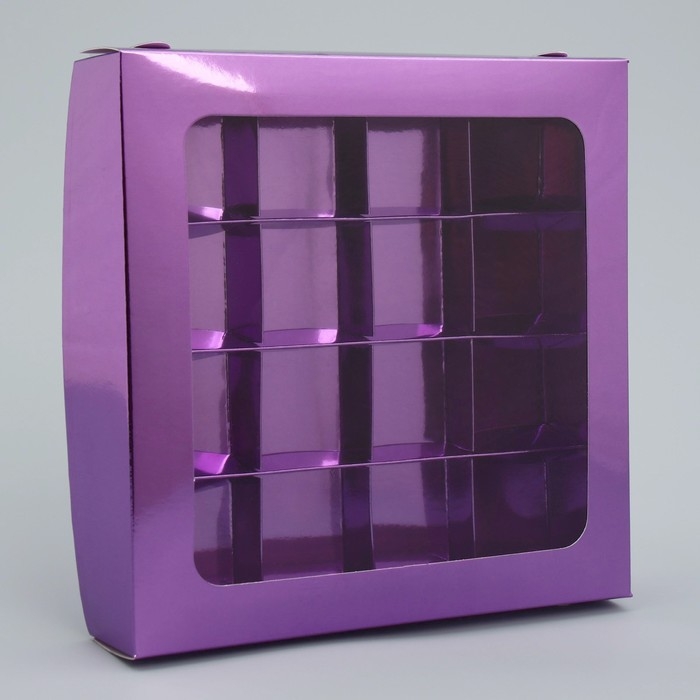 Коробка для конфет, кондитерская упаковка, 16 ячеек «Фиалка», 18.9 х 18.9 х 3.8 см