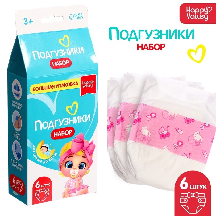 Набор «Подгузники» для кукол, 6 штук