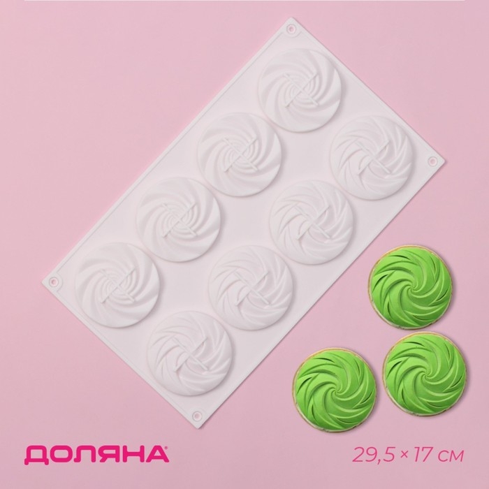 Форма для выпечки Доляна «Сладости.Завиток», силикон, 8 ячеек, 29,5×17×1,5 см, цвет белый
