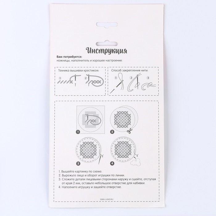 Вышивка — творческое занятие, которое направлено на развитие мелкой моторики у детей. Ребёнку предстоит продевать нити через специальные отверстия на канве. Делать это предстоит с помощью безопасной пластиковой иглы из комплекта и в определенной последовательности, чтобы соблюсти рисунок и украсить персонажа.