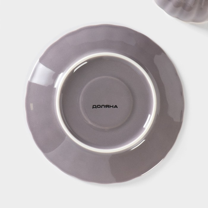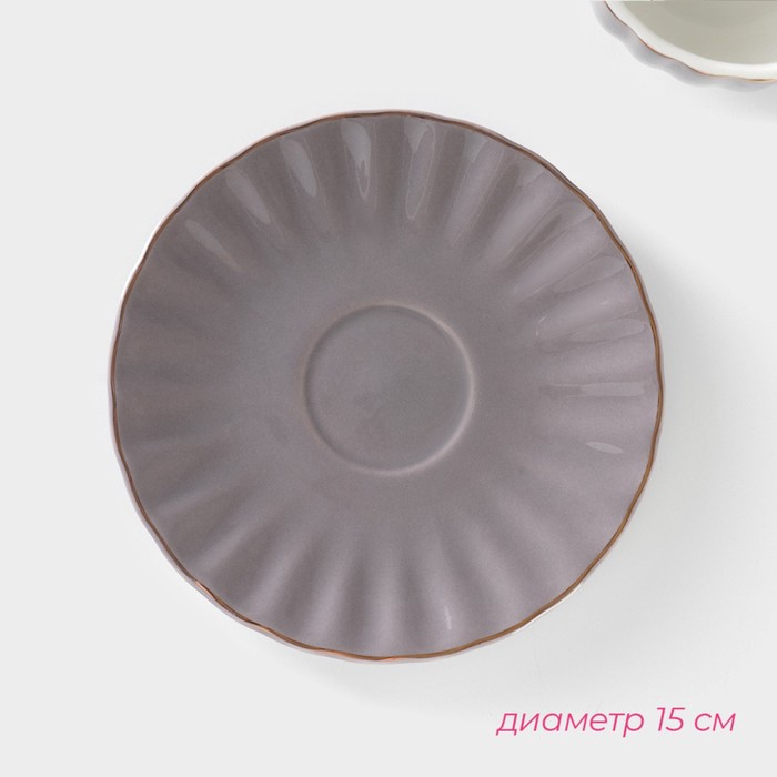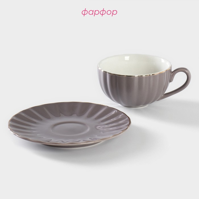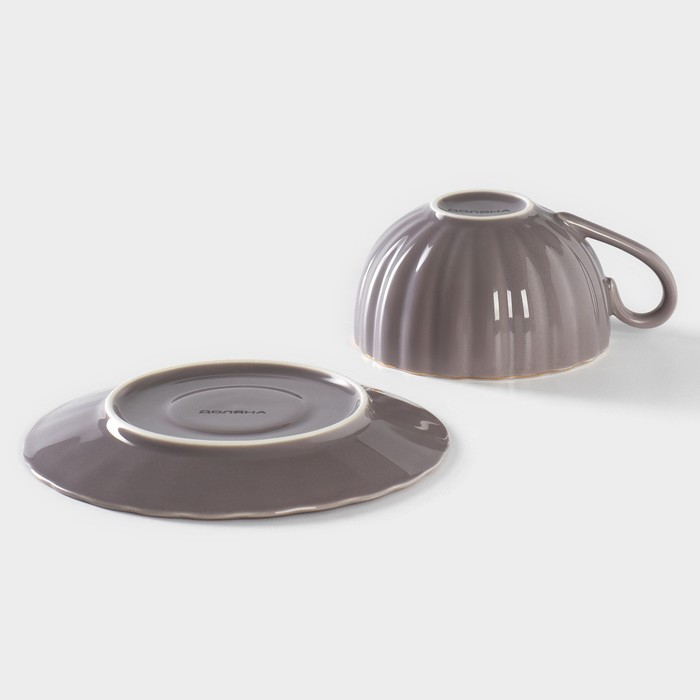 Чайная пара фарфоровая Доляна «Вивьен», 2 предмета: чашка 200 мл, блюдце d=15 см, цвет серый
