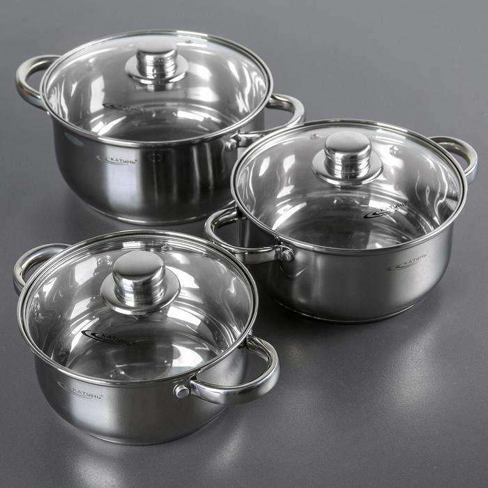 Набор кастрюль «Гретта», 3 предмета: 2,2 л, 3,2 л, 4,2 л, капсульное дно, индукция