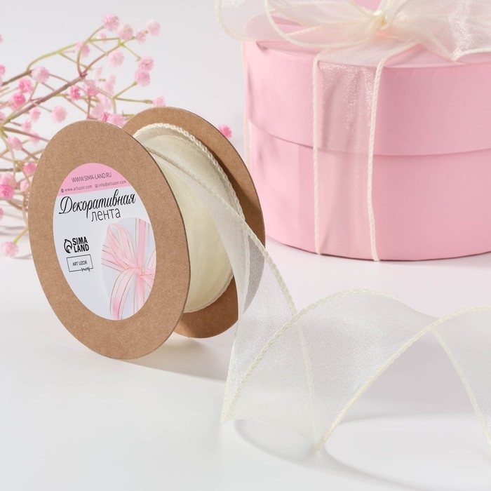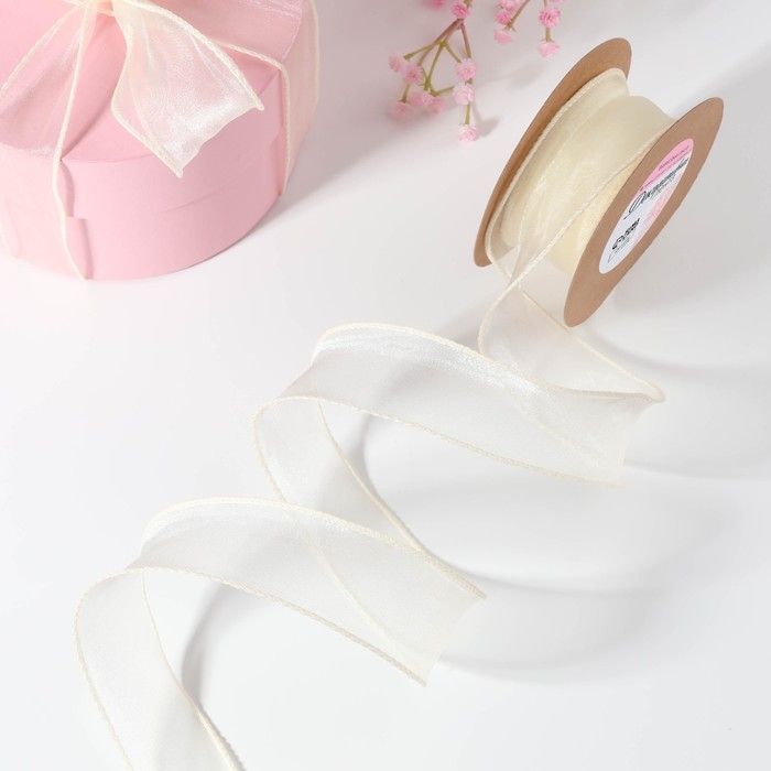 Лента капроновая «Волна», с блеском, 40 мм, 10 ± 1 м, цвет сливочный №3