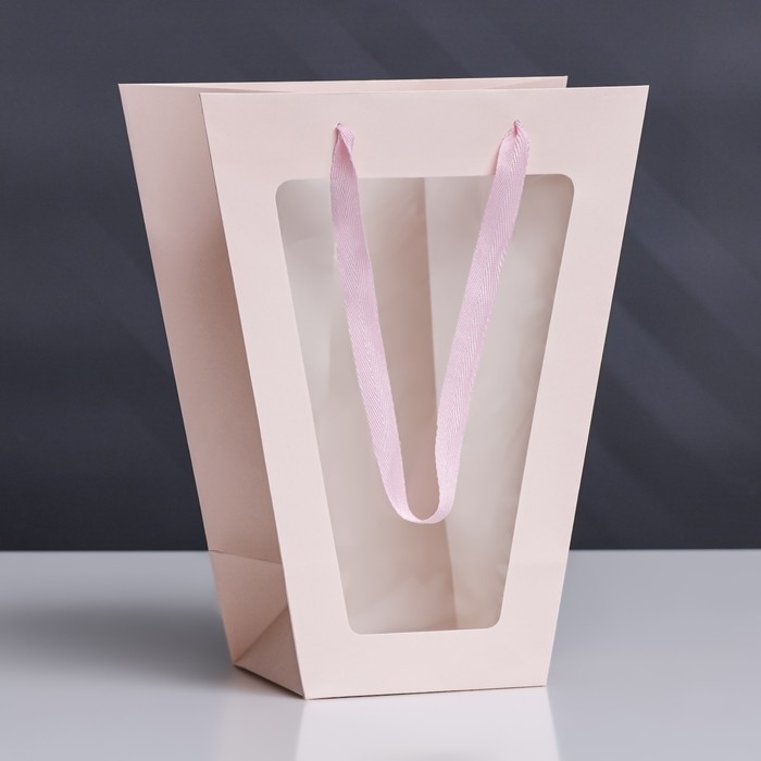 Пакет-переноска для цветов 18 × 14 × 35 х 28 см, розовый