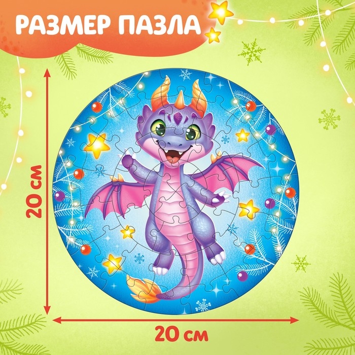 Круглый пазл «Весёлый дракончик» — то, что нужно для полезного и интересного досуга! Такой подарок поможет ребёнку скрасить ожидание Нового года. Необычная форма привлекает внимание и стимулирует познавательную активность на более высоком уровне, чем классические пазлы.