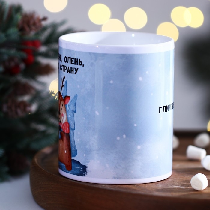 Кружка новогодняя керамическая «Неси меня олень», 320 мл, цвет голубой