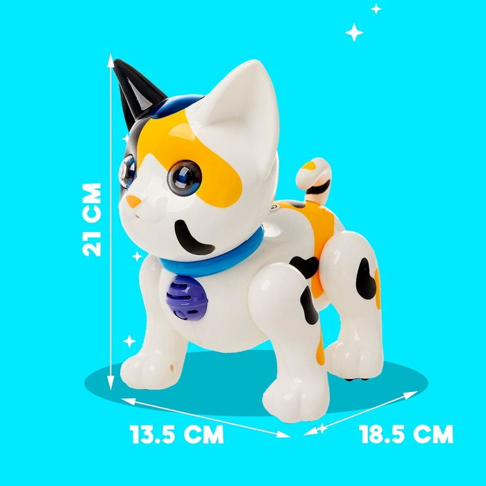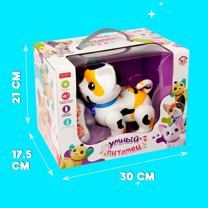 Робот кот «Умный питомец» ZHORYA, программируемый, на пульте управления, интерактивный: звук, свет, танцующий, музыкальный, на батарейках, на русском языке, белый