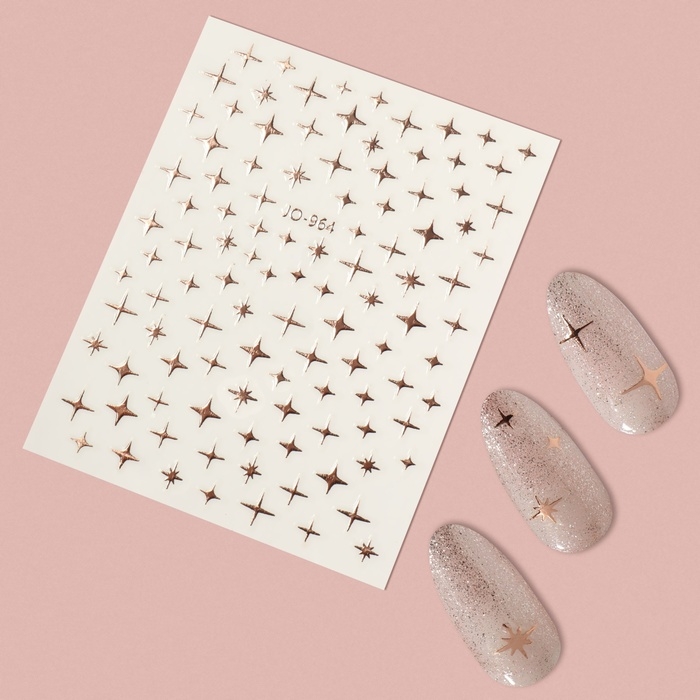 Наклейки для ногтей «Звезда», объёмные, металлизированные, цвет розово-золотистый