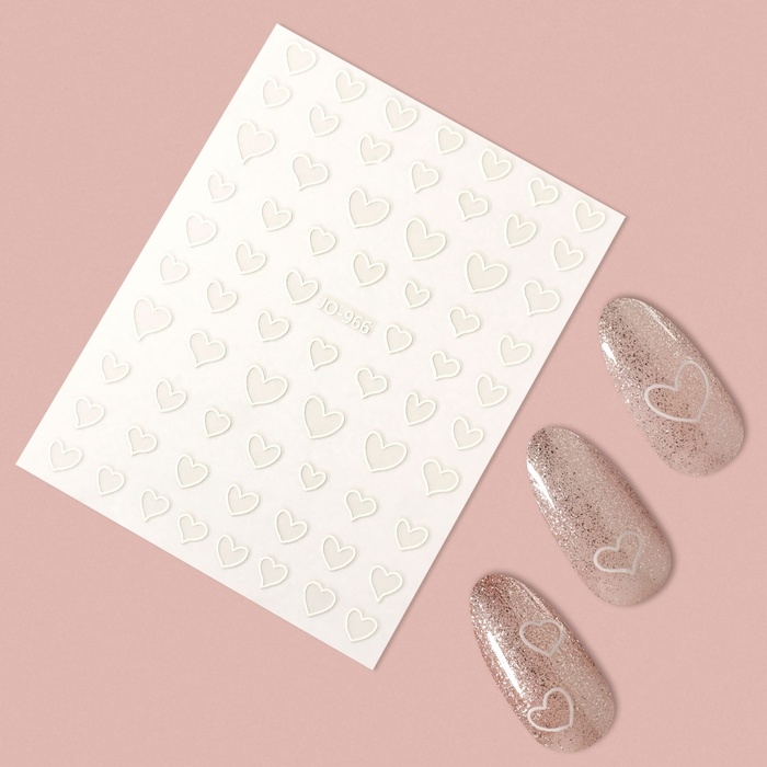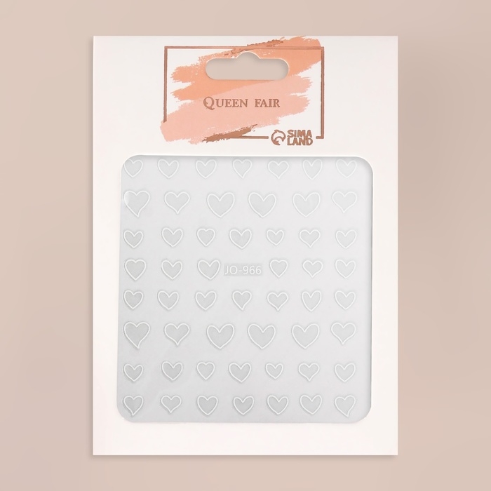 Наклейки для ногтей «Сердца», объёмные, цвет белый