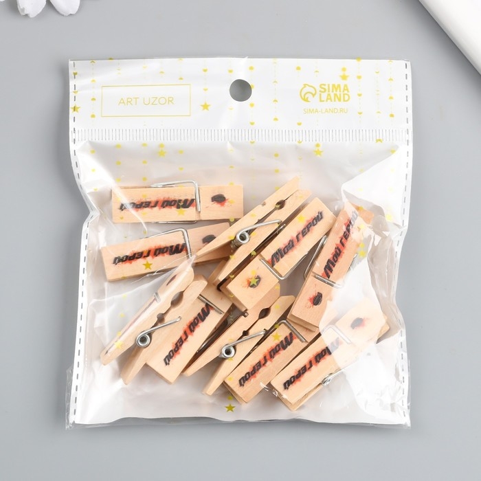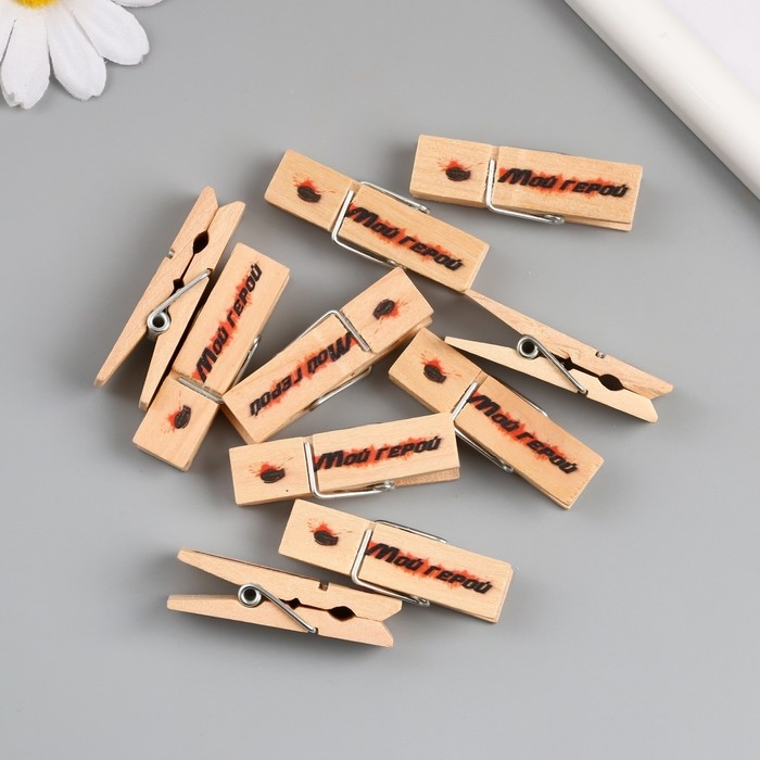 Декор для творчества дерево "Прищепка - Мой герой" набор 10 шт