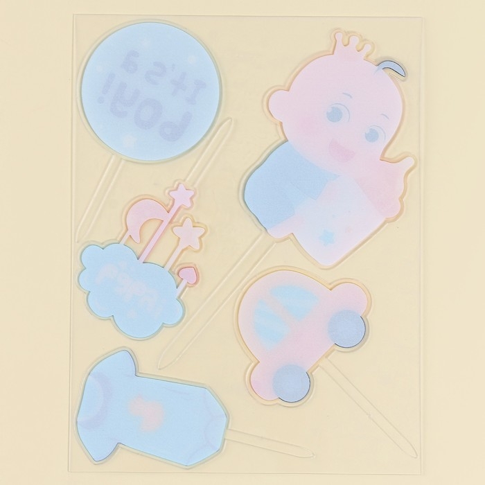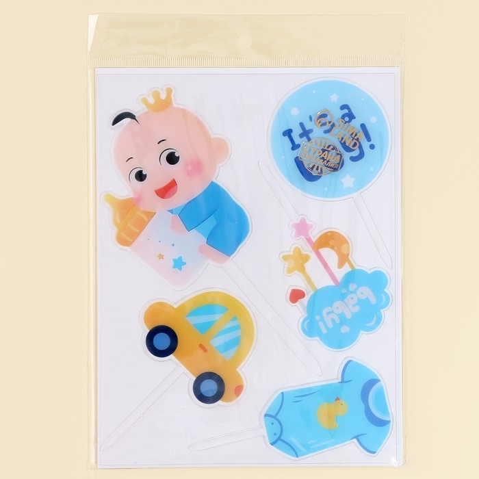 Набор топперов «Мальчик» — это прекрасное дополнение к торту на праздник в честь определения пола вашего малыша или встречу из роддома. В комплект входят топперы голубого цвета, выполненных из пластика. Оптимальная высота каждого держателя подходит для украшения любых десертов.