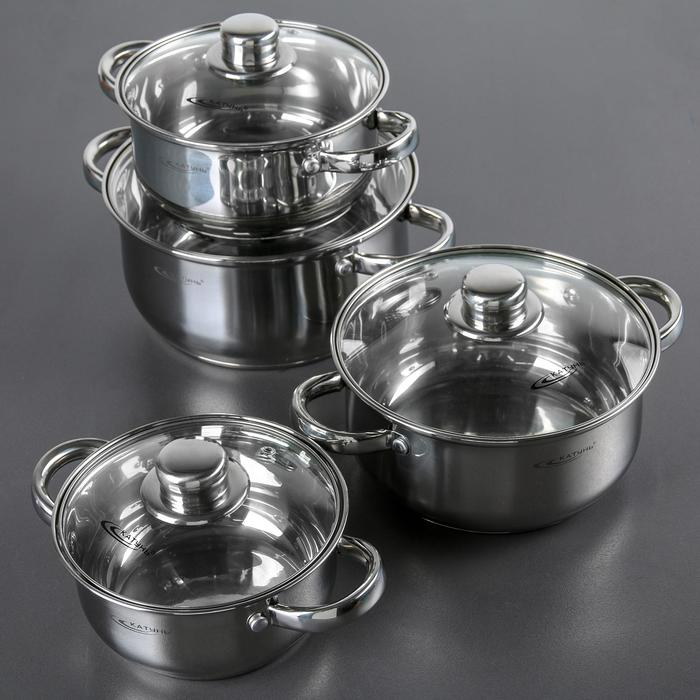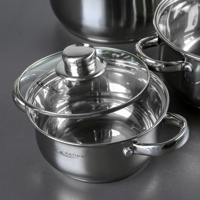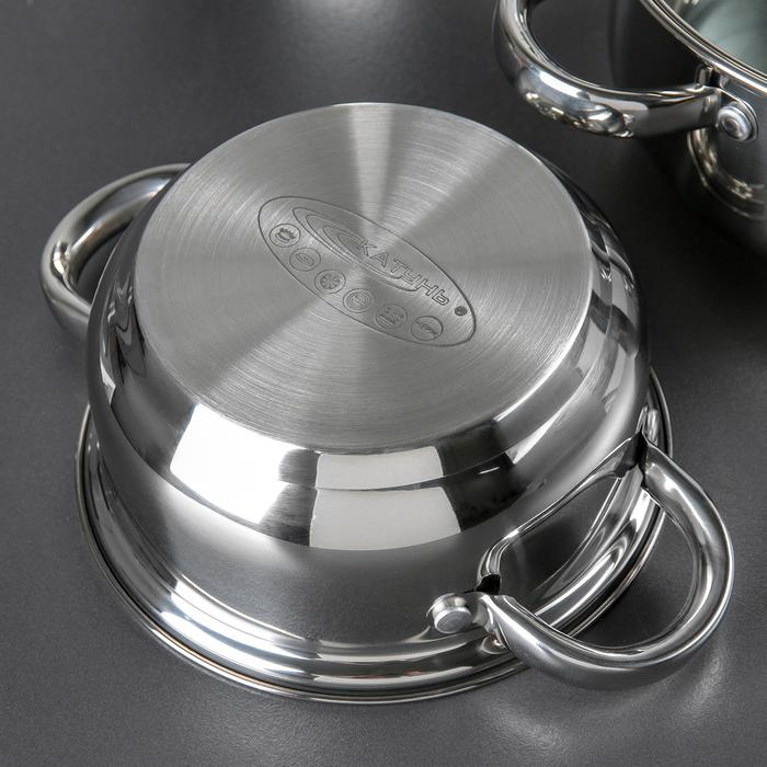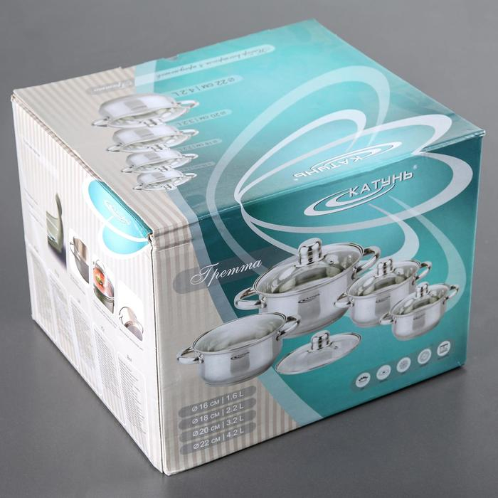 Набор кастрюль «Гретта», 4 предмета: 1,6 л, 2,2 л, 3,2 л, 4,2 л, стеклянные крышки, капсульное дно, индукция